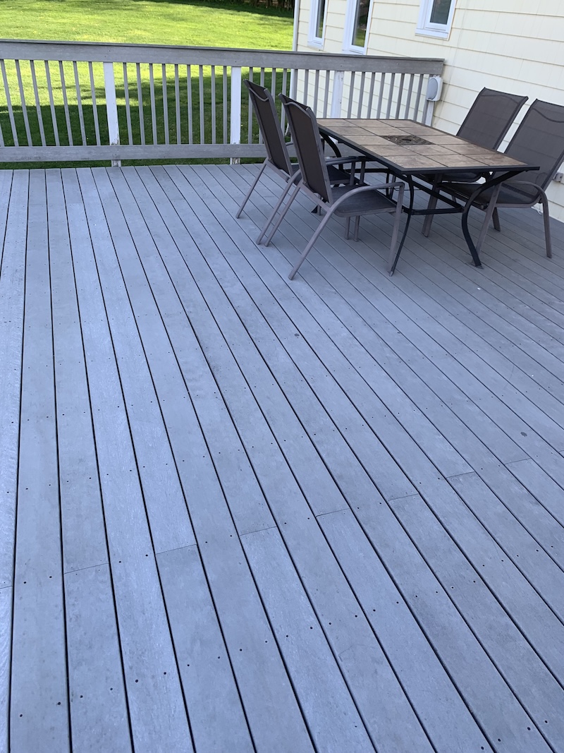 This customer in Clinton has such a beautiful home. He needed the outside to match the beautiful inside. So he called us for a house wash and Deck Cleaning. As you can tell it had not been touched in many years. When any surface of your property goes that long without maintenance it goes from a cleaning to a restoration project. These older composite decks are easy to damage and tricky to get just right. Unfortunately the after photos never made it of the house but we got the deck!